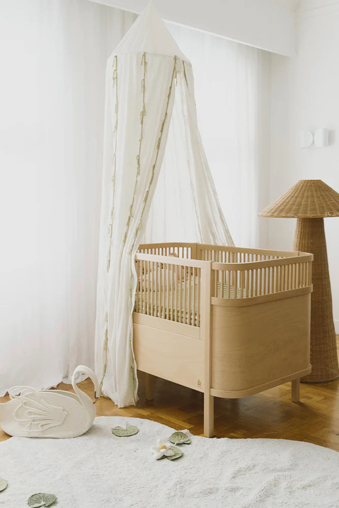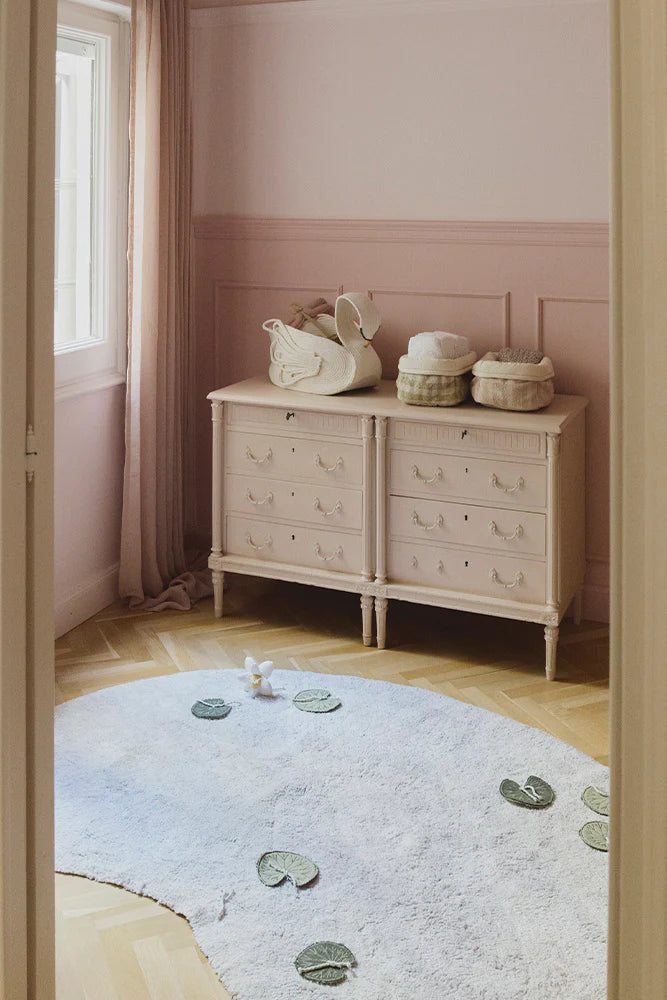 Dive into Swan Lake and let little imaginations float. Our interactive rug is a true work of art. Easy to combine with other decor pieces, it features seven double-sided water lilies, each carefully handcrafted with delicate two-tone leaves and intricate flower details. The water lilies are thoughtfully attached using the rug’s own threads, adding an extra touch of craftsmanship.